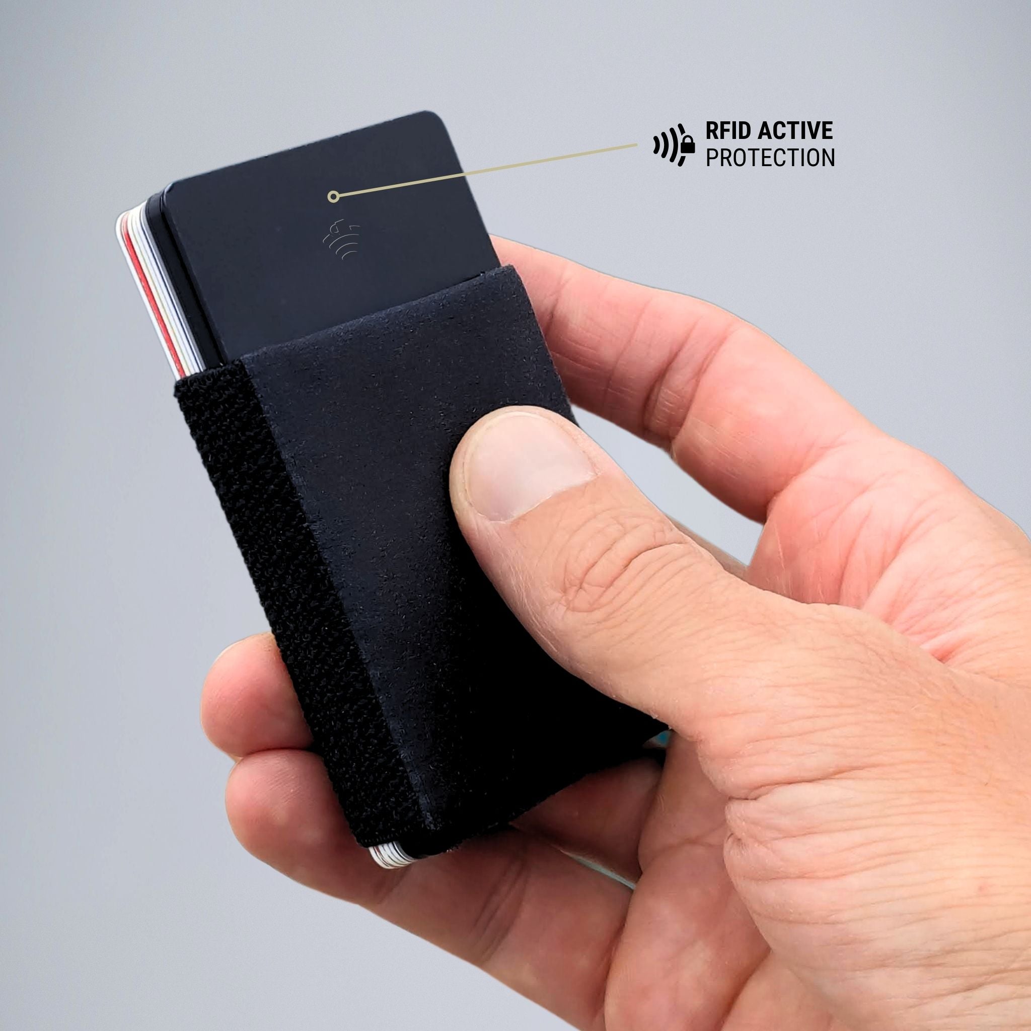 Beim ULTRALIGHT PRO ist die Funktion bereits integriert. Du musst also keine zusätzliche Karte hinzufügen. Im Gegensatz zu vielen anderen Herstellern, die für RFID-Schutz auf schwere Aluminiumhüllen setzen, nutzen unsere RFID-Blocker eine innovative Störsignal-Technik. Dadurch wird ein elektromagnetisches Rauschen erzeugt, das die Kartendaten zuverlässig verschleiert, ohne das Wallet sperrig oder schwer zu machen. Diese Lösung bietet maximalen Schutz bei minimalem Gewicht – eine echte Innovation im Vergleich zu herkömmlichen, metallbasierten Abschirmungen.
